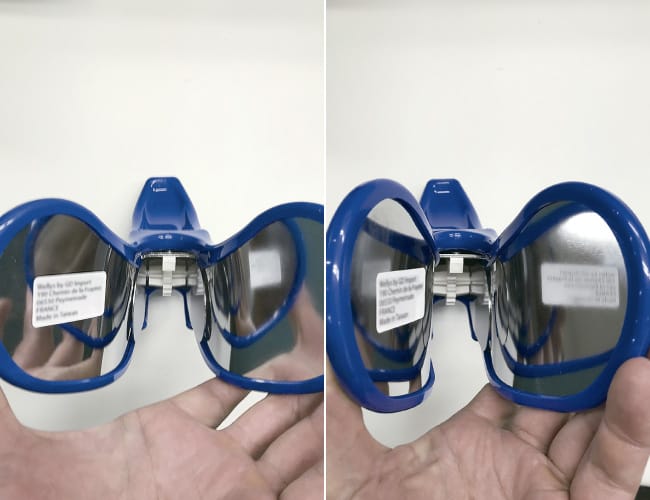 シェイパーを股下3~6㎝のところで両股にはさみ、先端を持って前に引っ張り、羽がしっかり太ももに密着し張力がかかっているポジションを確認して下さい。